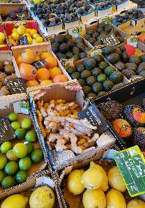 les étals colorés présentent un grand choix de produits que les marchands nous permettent de goûter !